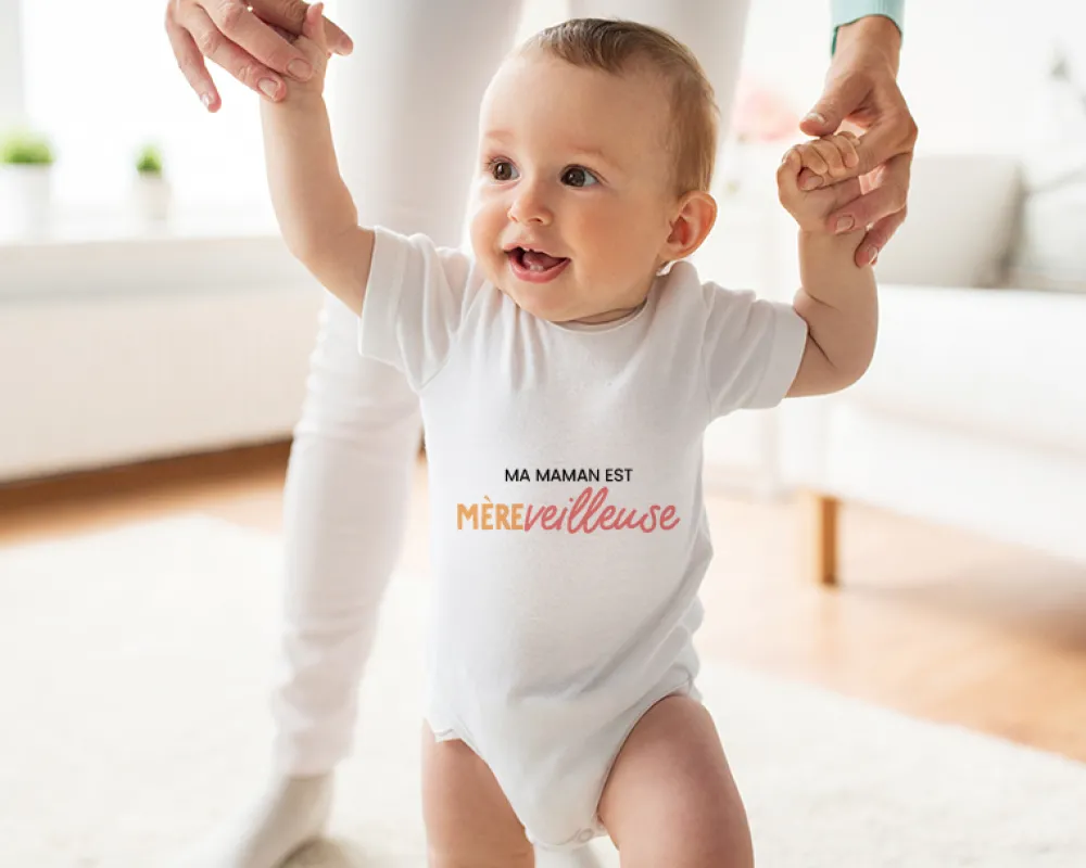 Offrez à maman un cadeau qui lui rappellera chaque jour à quel point elle est précieuse et aimée. Avec notre body bebe maman « Mère-veilleuse », chaque instant devient une occasion spéciale pour célébrer le lien unique qui unit maman et bébé.