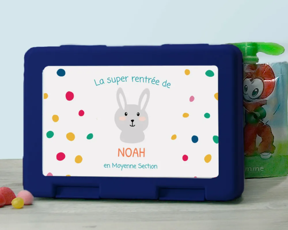 Le choix des couleurs vous garantit de coller aux mieux aux goûts de votre enfant, que cela soit une fille ou un garçon ! Il ou elle pourra choisir l’animal emblème pour le design. Pour la personnaliser, vous pourrez y inscrire bien sûr le prénom de votre enfant, mais aussi un petit message, le nom de sa classe ou signaler une allergie par exemple ! Les possibilités sont multiples, à vous de faire votre choix pour créer la boite à goûter de ses rêves à votre enfant.