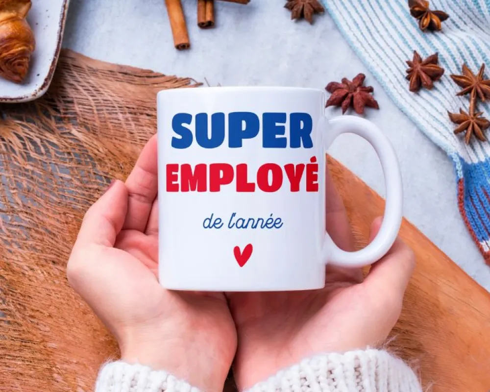 Nous personnalisons chaque mug en France dans notre atelier situé à Laval, en Mayenne. Cela signifie que chaque mug est unique et personnalisé avec soin, garantissant que votre cadeau sera apprécié et qu’il accompagnera l’employé dans sa vie quotidienne.
