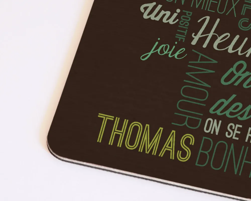Partagez de manière originale avec vos invités ce qui fait le sel de votre vie de famille épanouie, à travers les inscriptions de ce magnifique tapis de sol personnalisé. Au programme de votre maison du bonheur : le partage, le fun, l’amour, l’entraide, la bonne humeur, le respect et tant d’autres choses dont vous pouvez être fier.e. De quoi inspirer positivement quiconque vous rendra visite.