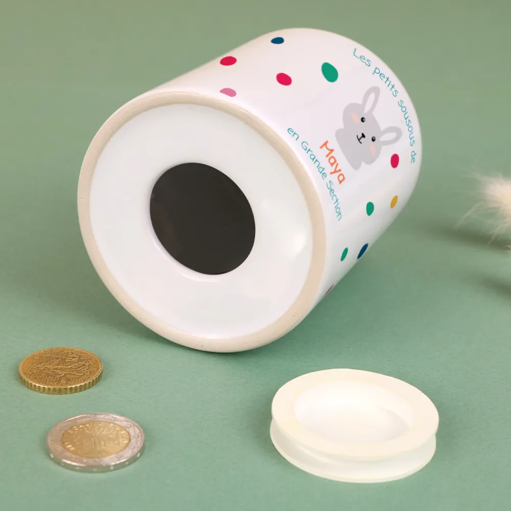 La tirelire est l’un des cadeaux les plus offerts lors d’une naissance. Cela peut permettre d’offrir une étrenne dans un contenant original, de responsabiliser un enfant sur la façon de gérer son argent de poche, d’appréhender ses premières additions et soustractions de manière ludique… Il y a toujours une bonne raison pour offrir une tirelire et encore plus lorsque celle-ci est personnalisée avec le prénom de l’enfant !