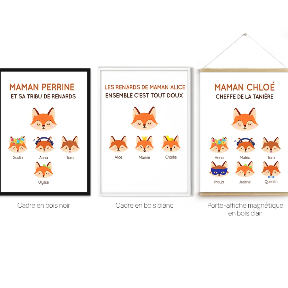 Ajoutez leurs prénoms pour une touche encore plus intime. Cette affiche famille est parfaite pour un cadeau d’anniversaire ou pour rappeler à Maman, chaque jour, l’amour de sa famille.