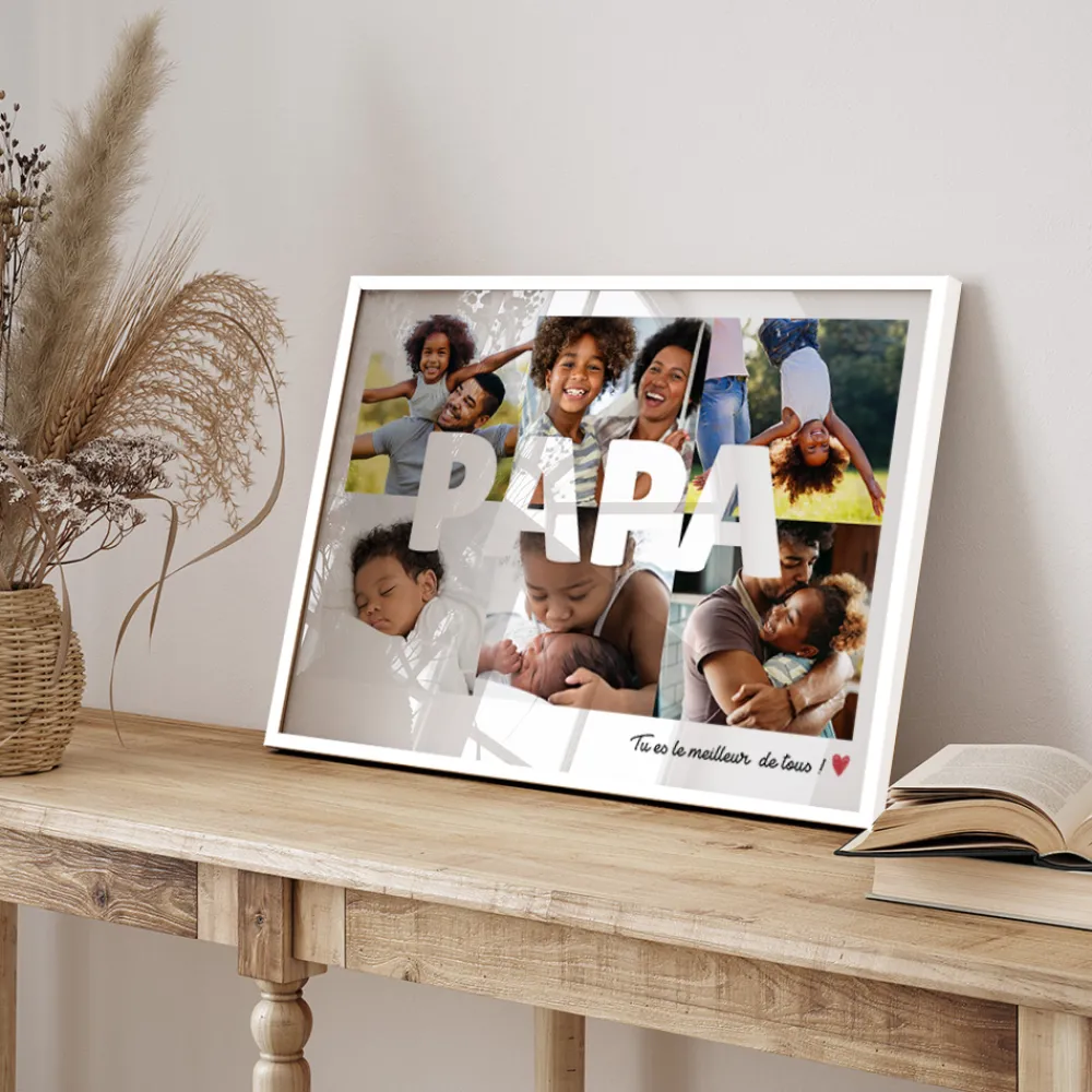 Transformez vos plus beaux souvenirs en une affiche personnalisée avec photos et créez une décoration murale remplie d’émotions. Grâce à son mot principal personnalisable en majuscules et ses photos intégrées, cette affiche famille personnalisée est une idée cadeau idéale pour toutes les occasions : fête des grands-mères, fête des mères, fête des pères et bien plus encore !