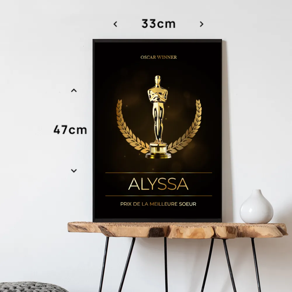 Un trophée ne suffit pas ? Cette affiche personnalisée au style glamour permet d’immortaliser un titre honorifique avec humour et élégance. Inspirée des grandes cérémonies de récompenses, elle transforme son destinataire en véritable star.