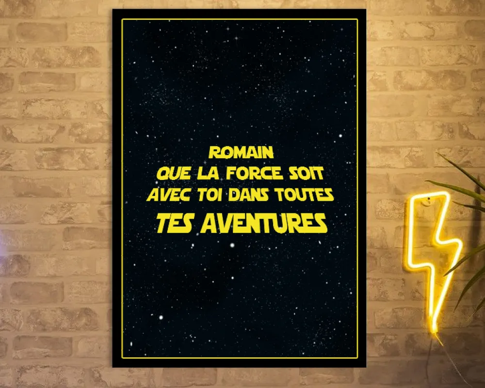 Dans une galaxie lointaine, très lointaine… Offrez l’aventure avec notre affiche personnalisée Star Wars ! Le cadeau parfait pour les geeks et les ados passionnés par l’univers épique de cette trilogie.