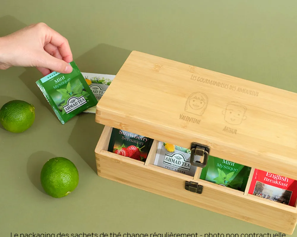 Un cadeau original et unique pour les amateurs de thés et d’infusions ! Offrez cette boite à thé en bois personnalisée ! Ajoutez les personnages de la famille du destinataire et obtenez le cadeau parfait ! Effet de surprise garanti !