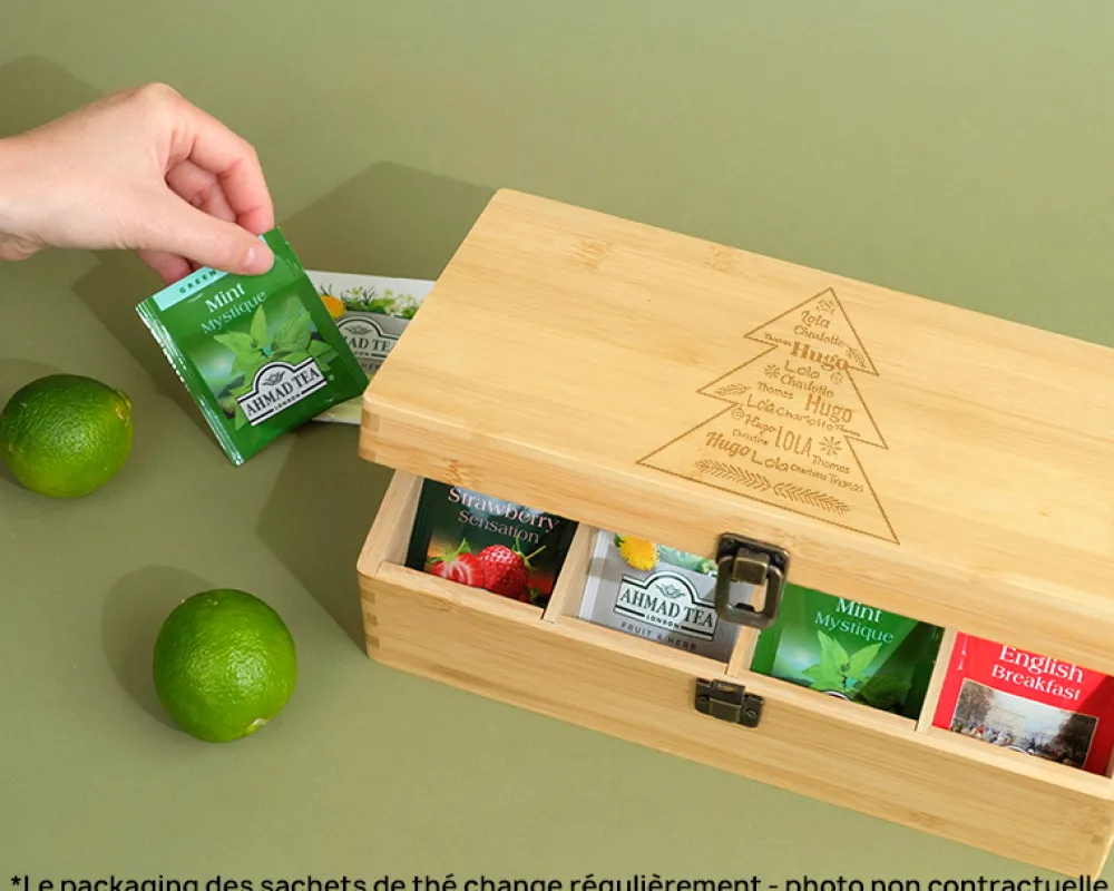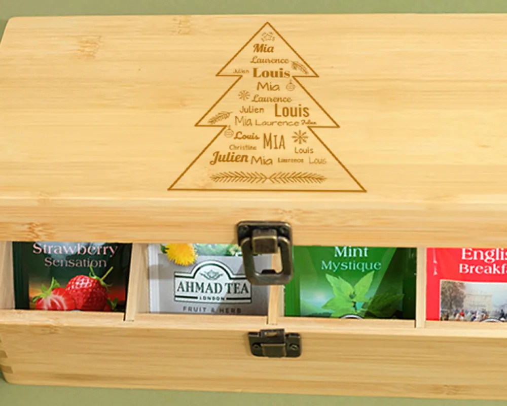 Boite à Thé gravée avec compartiments – Collection Sapin Famille|Cadeaux.com Outlet