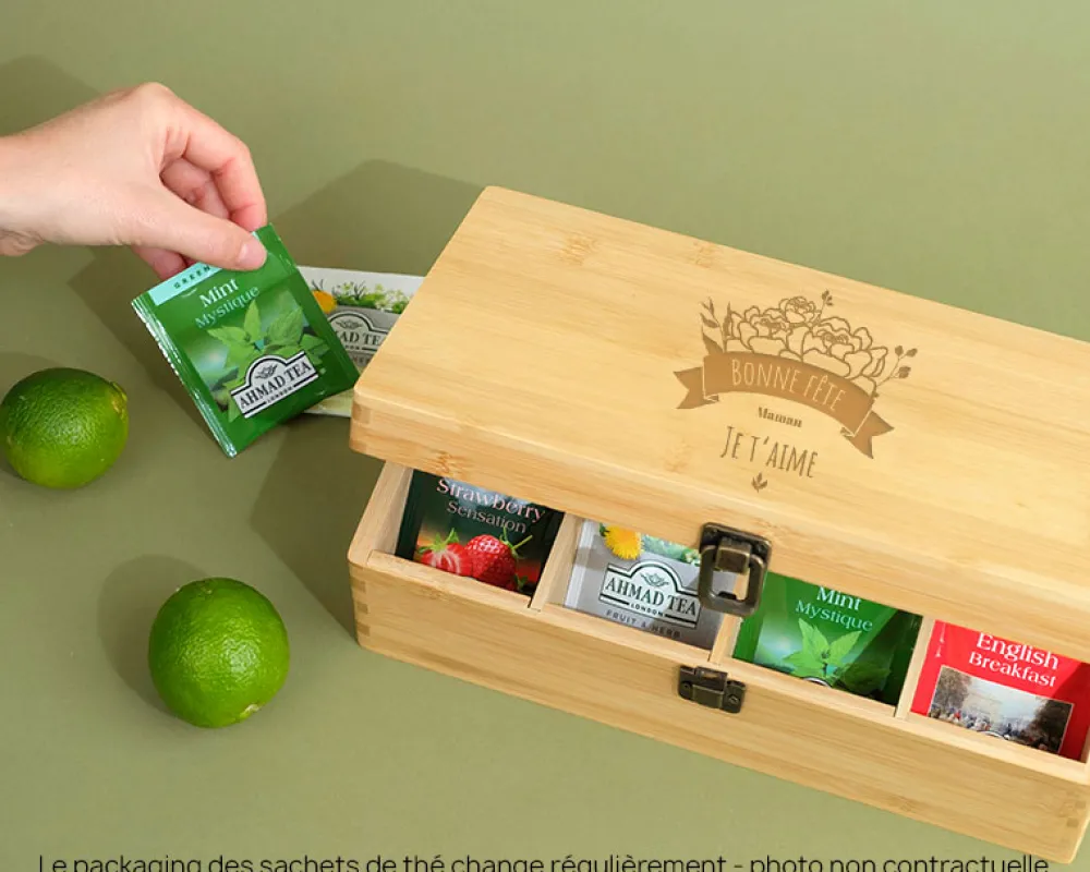 Y a-t-il meilleur plaisir pour votre maman que de déguster une délicieuse infusion ? Oui, celui de pouvoir choisir son thé dans la plus jolie des boîtes à thé en bois.