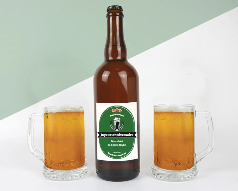C’est l’heure de l’apéro ! La bière est au frais, vos amis arrivent, il ne vous manque plus qu’à faire forte impression. Personnalisez l’étiquette de notre bière, rendant ce moment d’autant plus unique. Pensez-y par exemple pour une crémaillère, un anniversaire, ou la Fête des Pères.