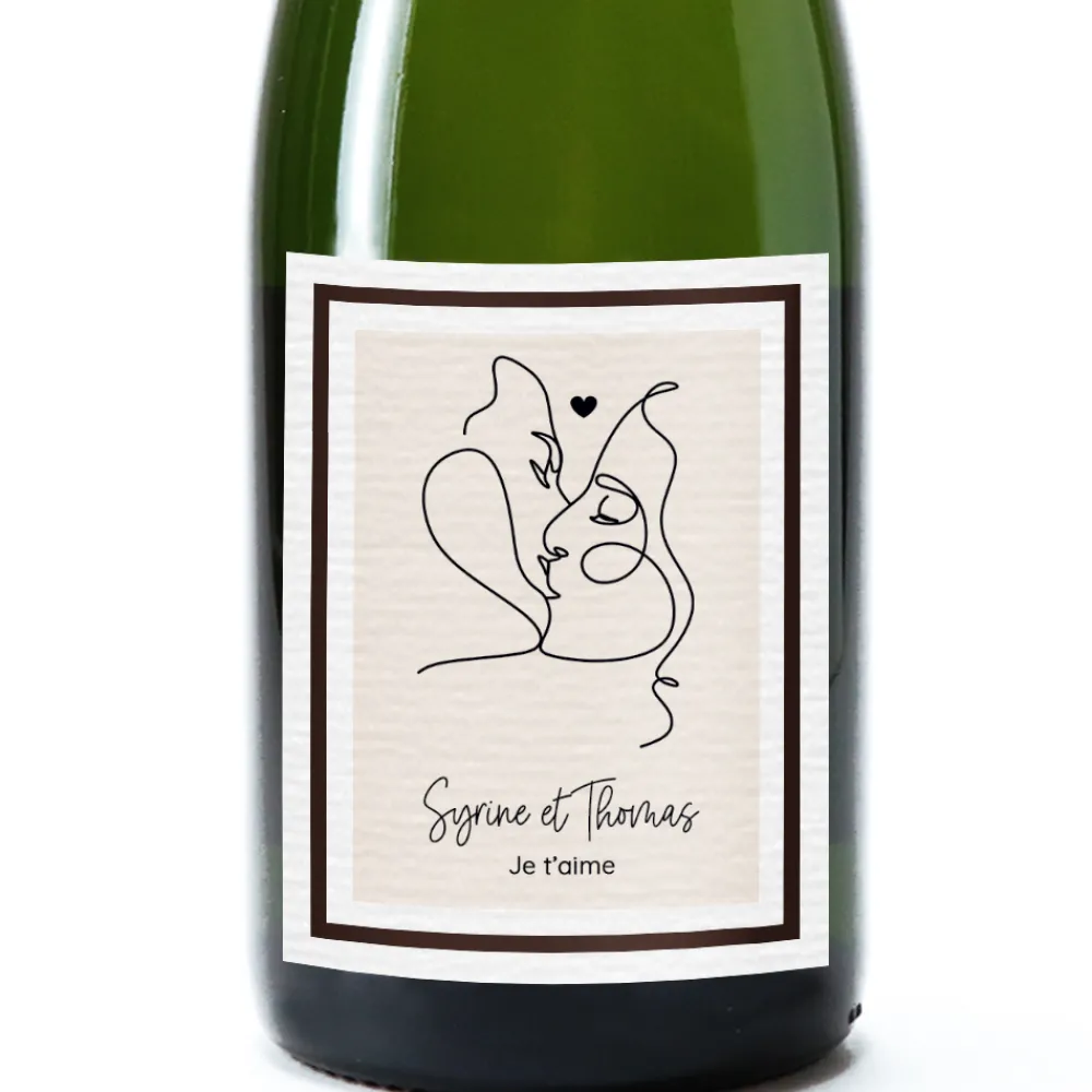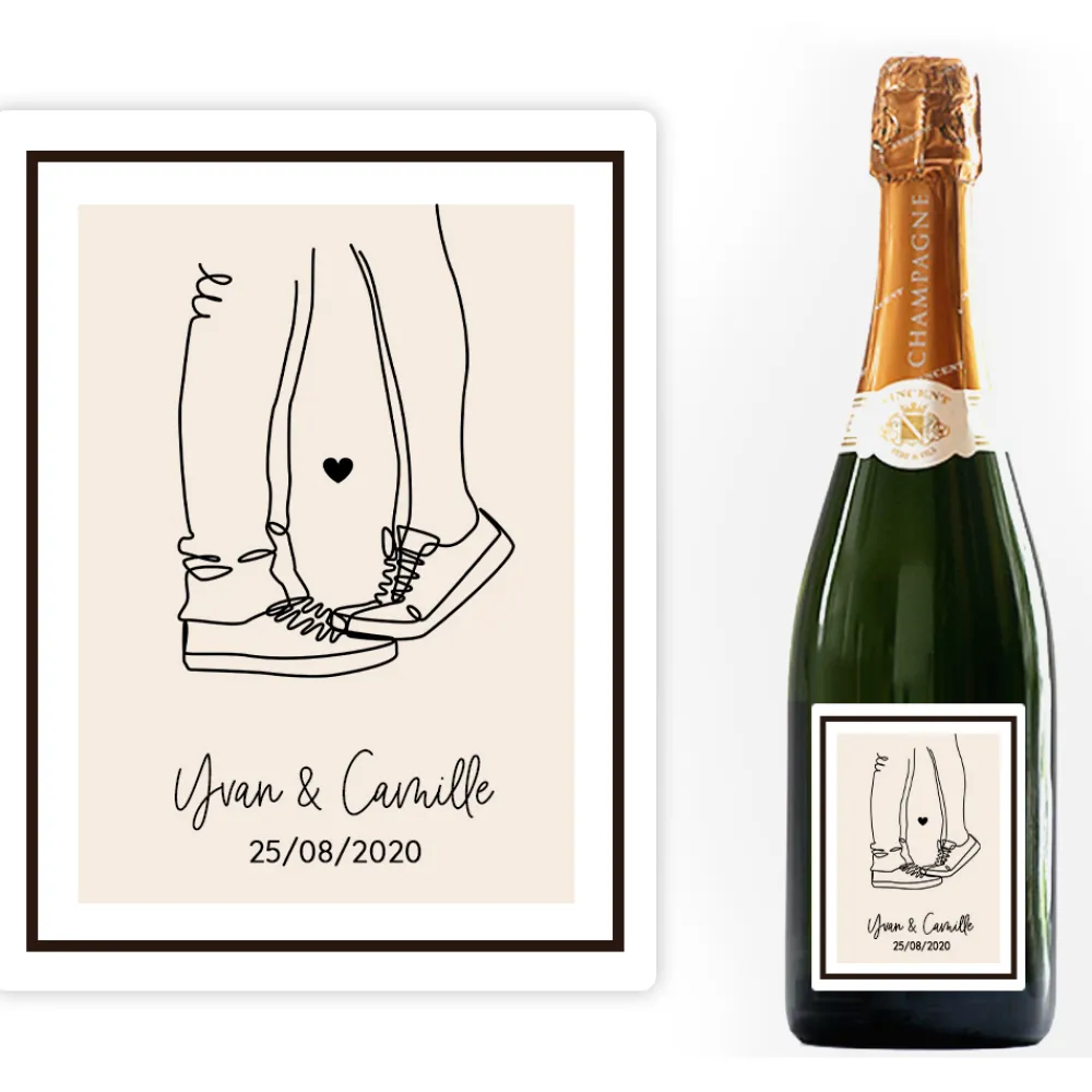 Inscrivez vos prénoms, votre date inoubliable et ajoutez le dessin minimaliste de votre choix sur l’étiquette personnalisée pour une touche unique. Offrir des bulles n’aura jamais été aussi romantique. Un cadeau pétillant qui marquera votre moitié.