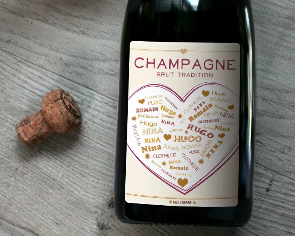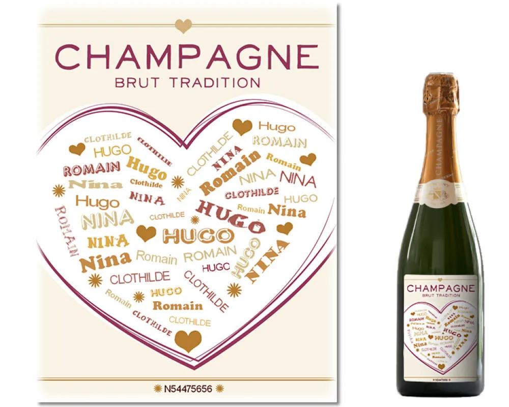 Bouteille de champagne personnalisée prénoms – Coeur Famille|Cadeaux.com Clearance