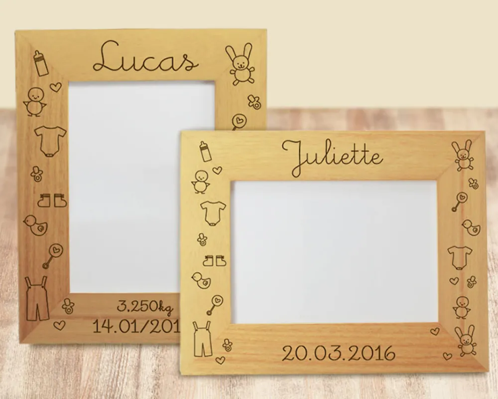 Faites graver sur le cadre son prénom, son poids et sa date de naissance à la manière d’un faire-part.