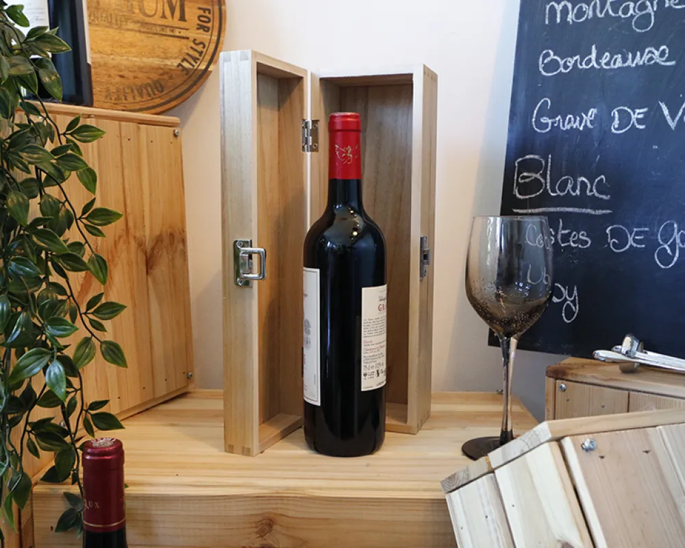 Cette caisse à vin gravée vintage mettra également joliment en valeur une bouteille de prestige que vous souhaitez offrir à un.e passionné.e de vin. Un beau coffret cadeau de luxe pour un cadeau exceptionnel, en somme. Vous pourriez alors personnaliser la caisse à vin en bois avec le nom de la bouteille, son millésime et un message de votre cru.