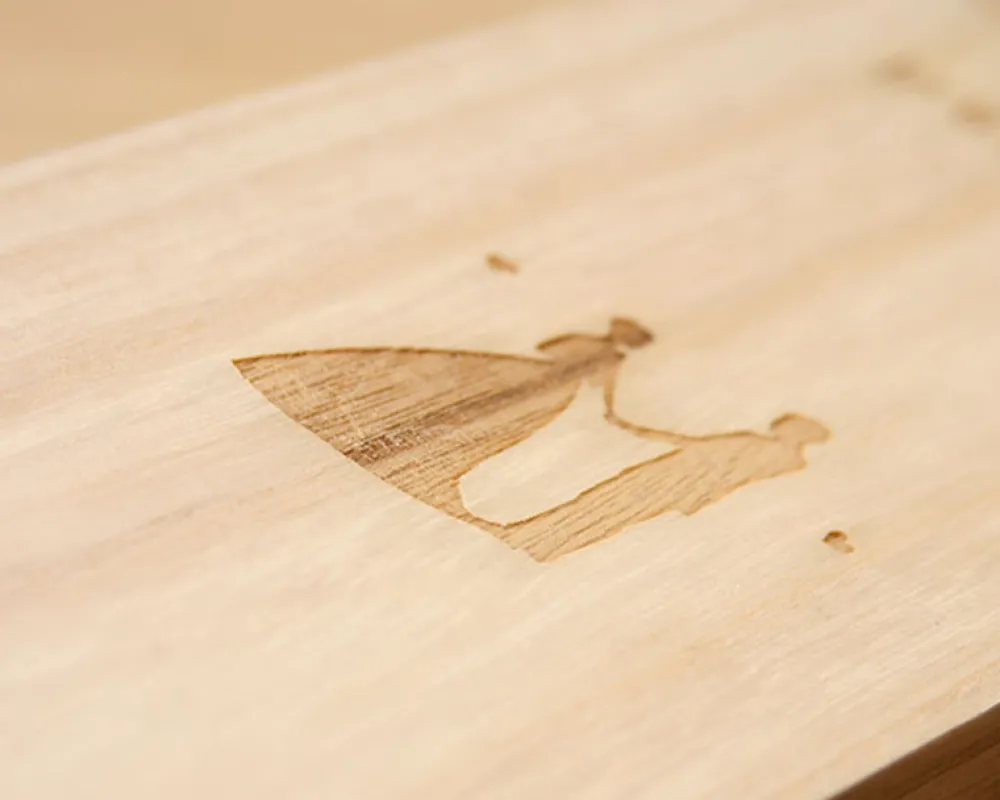 Le bois est un matériau naturel : sa couleur et la couleur de la gravure peuvent varier en fonction des veines du bois.