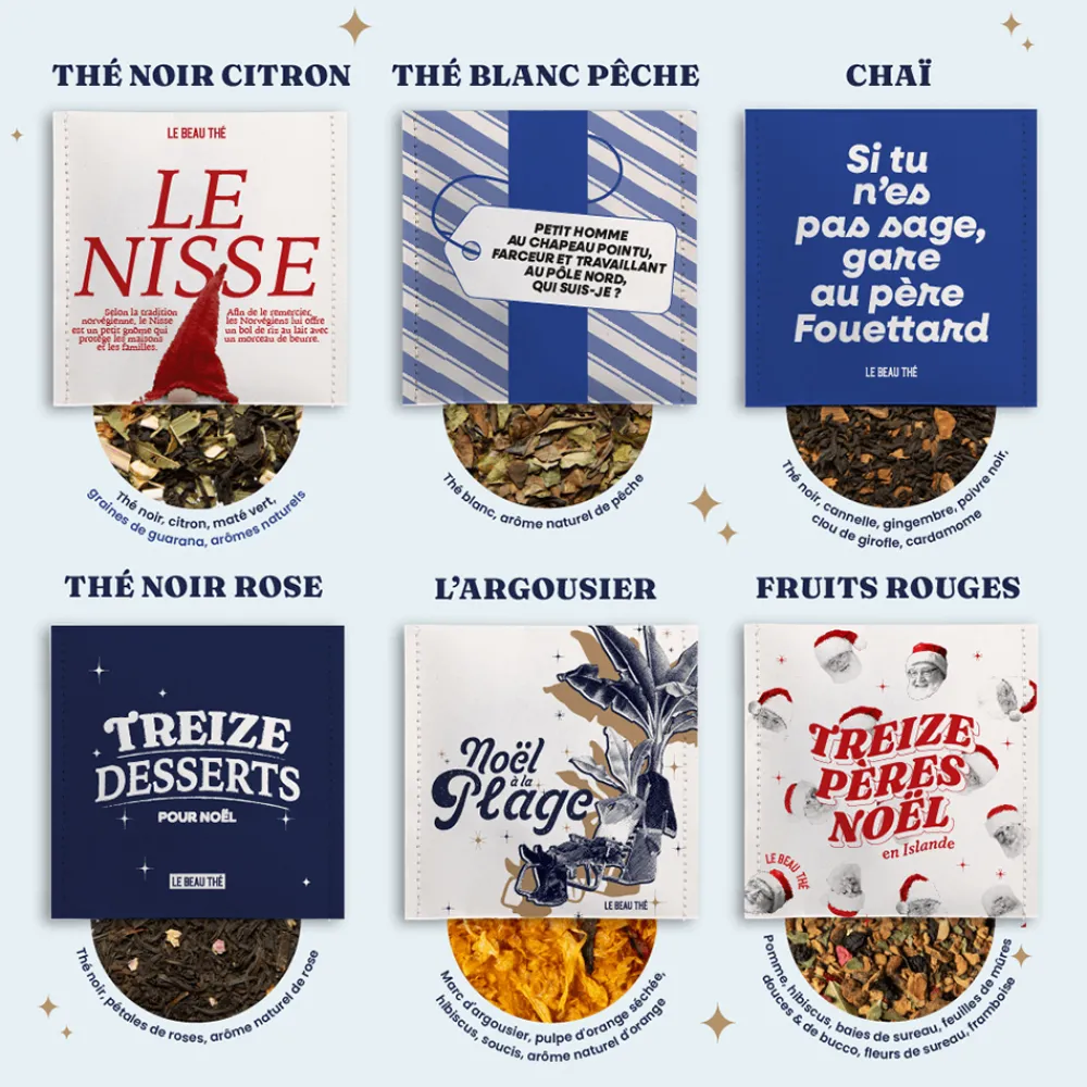 Que vous soyez amateur de thés verts, noirs ou d’infusions aux plantes, ce calendrier artisanal vous offre 24 créations uniques pour savourer chaque matin de décembre. Les saveurs délicates et les illustrations festives se mêlent pour créer une expérience inoubliable, parfaite pour les amateurs de thé et les passionnés de cadeaux écoresponsables.