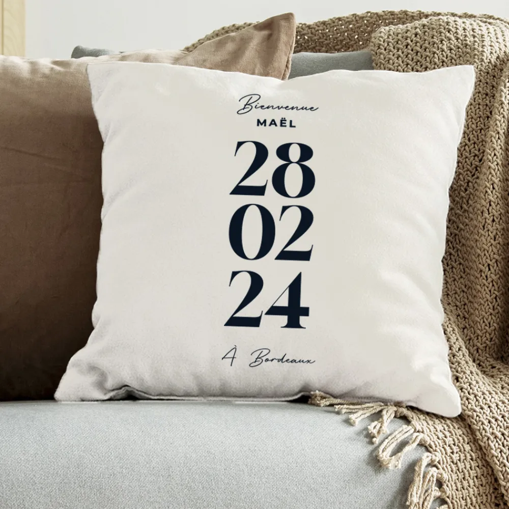 Certains jours comptent plus que d’autres. Ils marquent un tournant, un commencement, une promesse. Ce coussin personnalisable a été imaginé pour immortaliser ces instants précieux : la naissance d’un enfant, une rencontre inoubliable, un « oui » murmuré, le début d’une nouvelle vie à deux.
