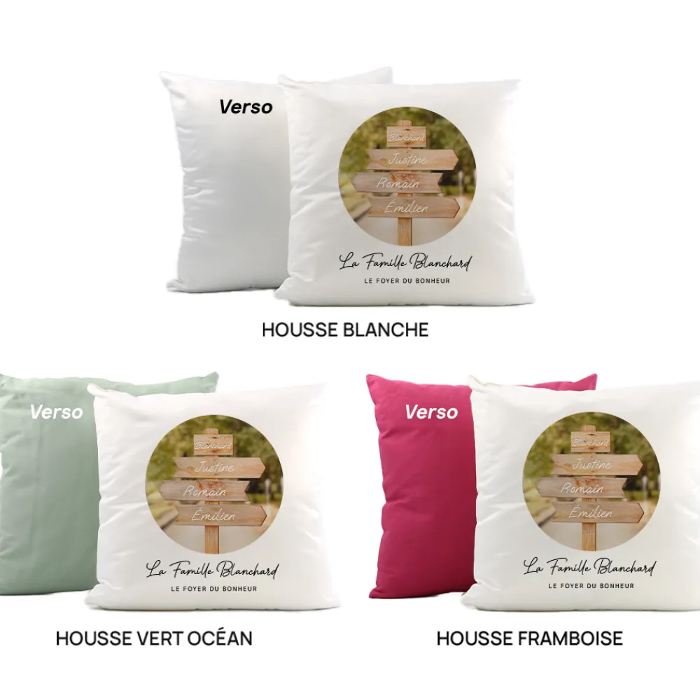 Chaque panneau représenté sur le design peut être personnalisé avec les prénoms de vos proches, créant ainsi un coussin à la fois décoratif et chargé d’émotion. Ce n’est pas juste un coussin : c’est une déclaration d’amour et de tendresse, un hommage à ceux qui comptent le plus pour vous.