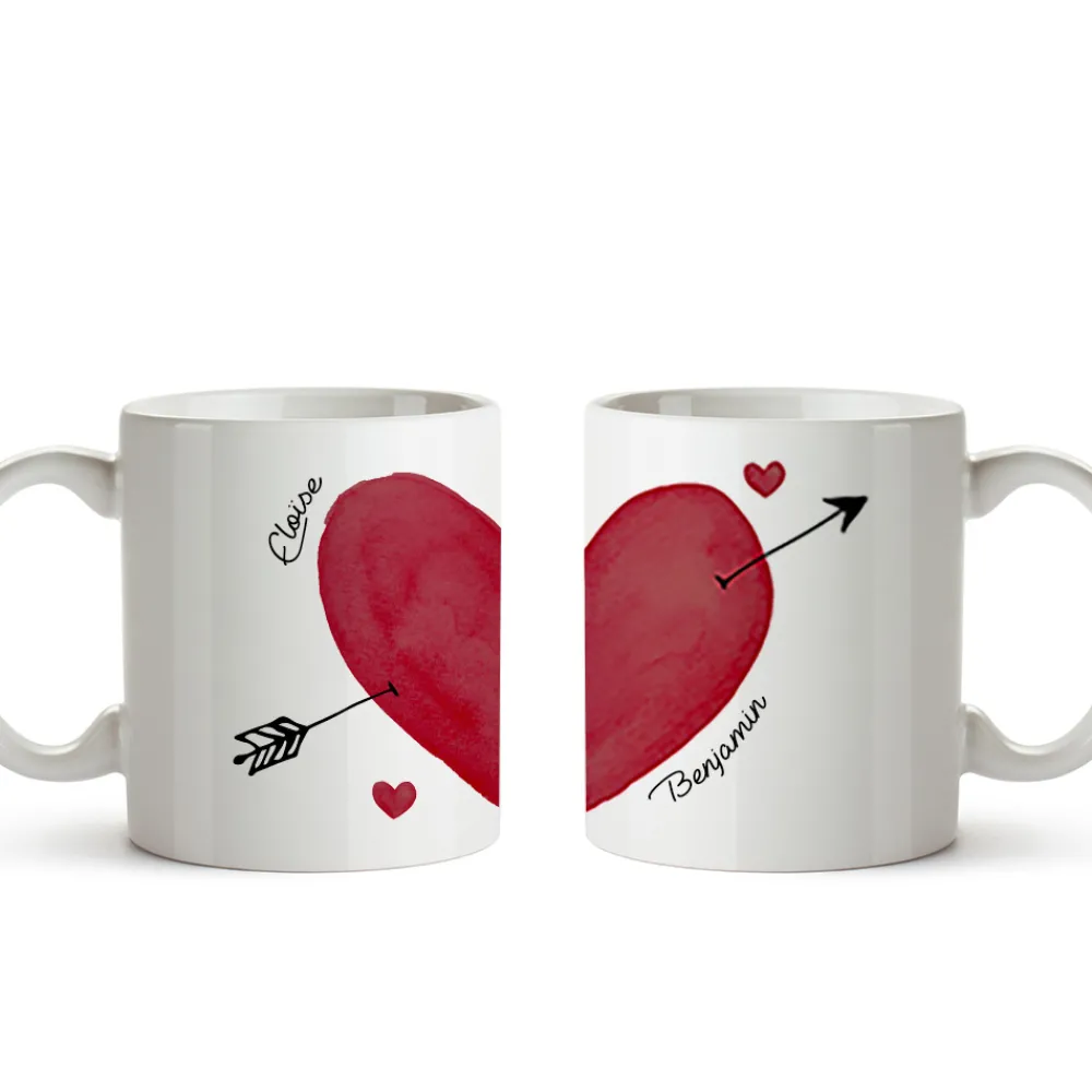 Exprimez votre amour avec ce duo de mugs personnalisés, parfait pour symboliser votre union. Chaque tasse représente une moitié de cœur, réunies pour former un symbole parfait de votre complicité. Ajoutez vos prénoms pour transformer ces mugs en un cadeau unique et personnel. Idéal pour commencer chaque matin avec une pensée pour votre moitié.