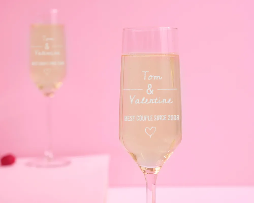 Voici quelques idées pour la personnalisation de votre flûte à champagne en verre gravée :