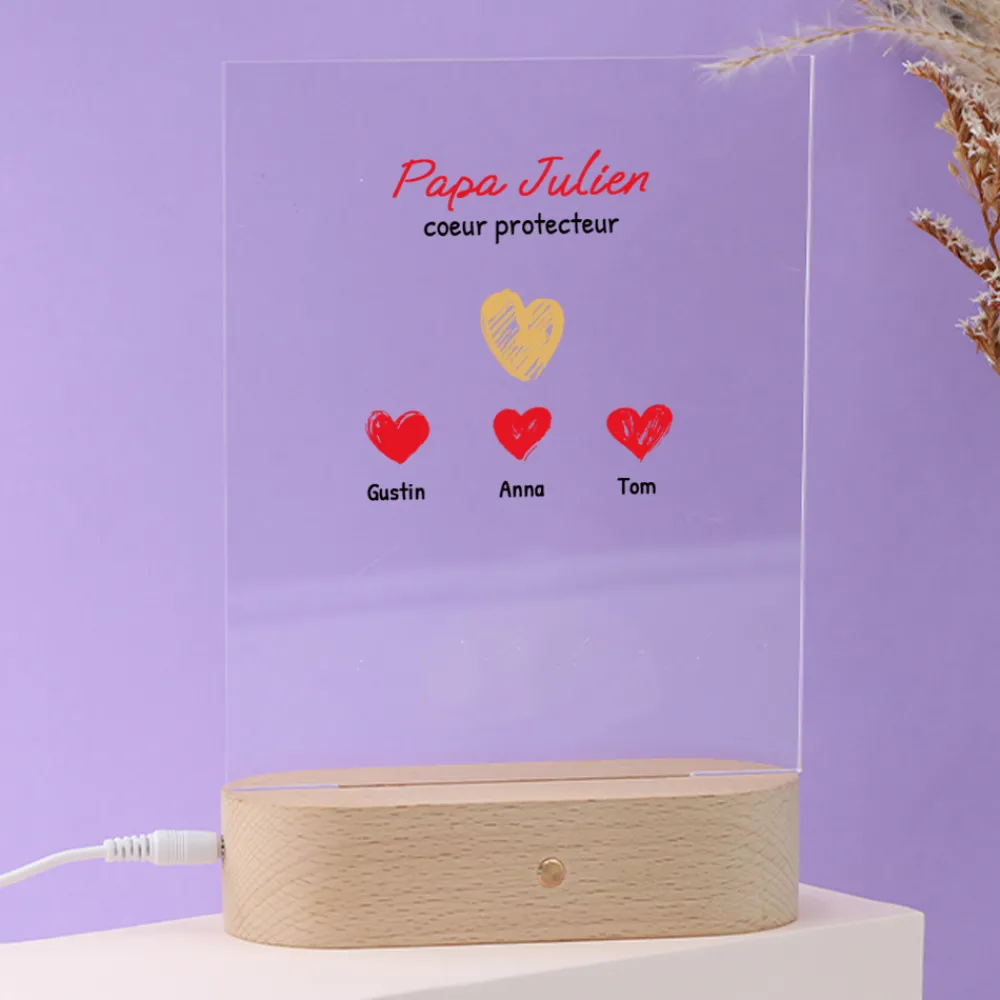 Illuminez le quotidien de papa avec cette lampe originale personnalisée, où chaque cœur représente un enfant.