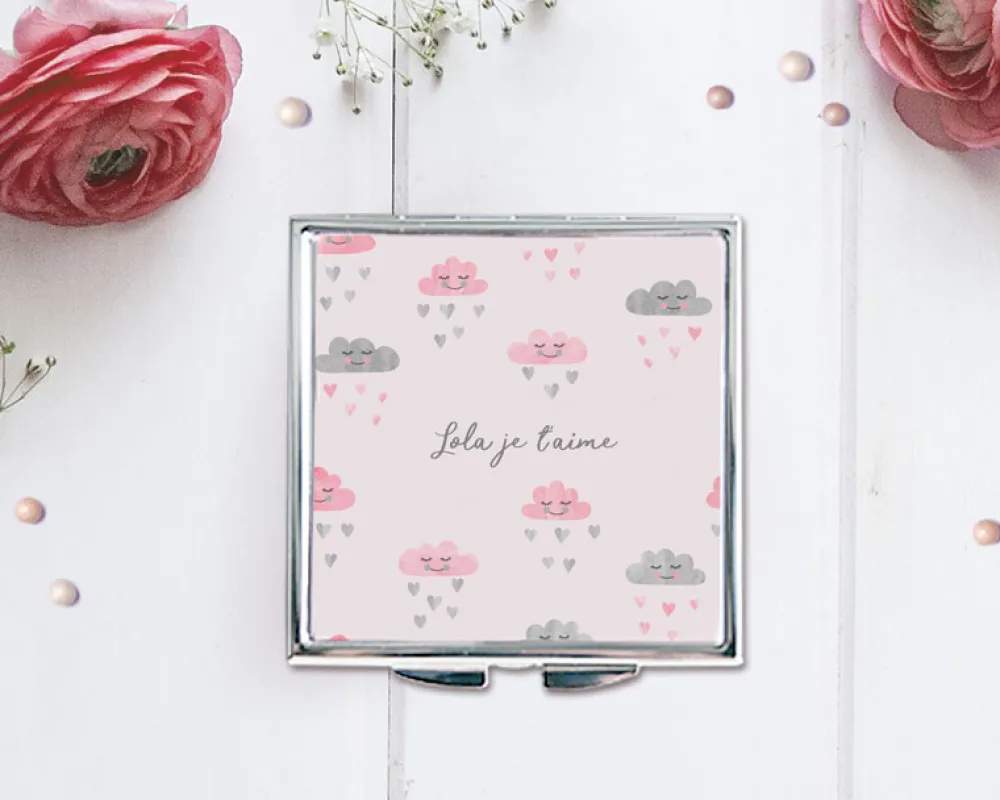 Découvrez ce petit miroir tout mignon ! Un joli miroir personnalisé du prénom ou du message de votre choix. Un cadeau pratique et utile qui donnera le sourire à la personne que vous aimez. Offrez-le pour la fête des mères, un anniversaire ou noël. C’est le cadeau idéal qui fera sûrement plaisir à votre maman, votre soeur ou votre meilleure amie. A vous de jouer !