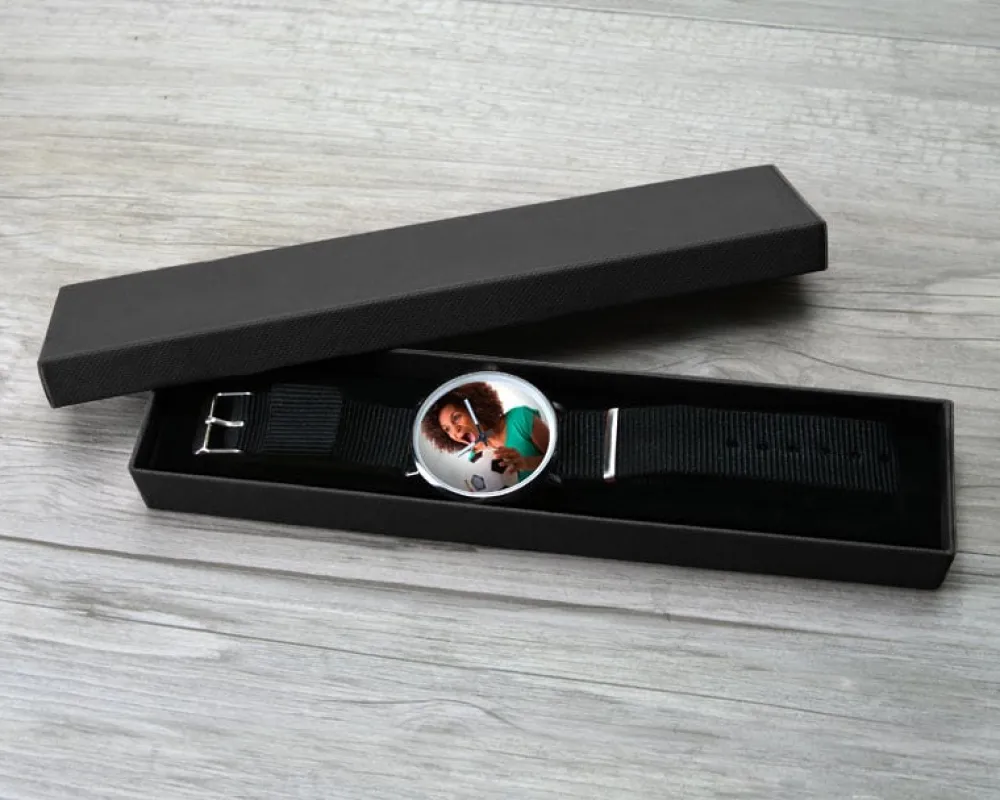 Montre noire Personnalisable – Cadran Photo|Cadeaux.com Outlet