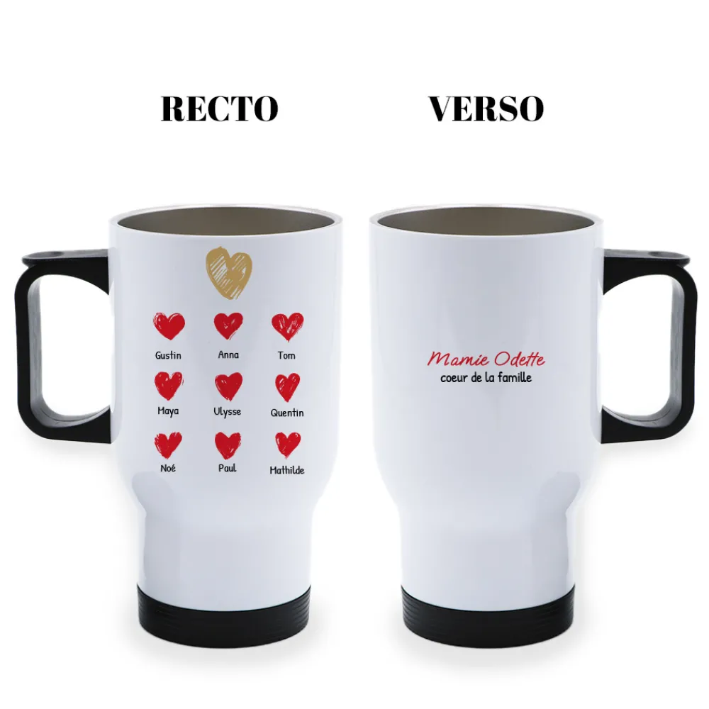 Pour une Mamie moderne et toujours en vadrouille, ce mug thermos personnalisé est l’accessoire indispensable.