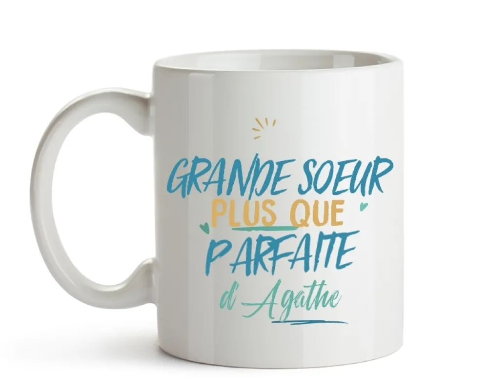 - Mug personnalisé en France avec le message de votre choix : Grâce à notre service de personnalisation durable et de haute qualité, vous pouvez créer un message unique qui correspondra parfaitement à votre relation avec votre grande sœur.