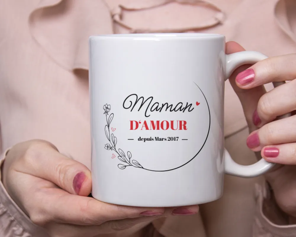 Rendez hommage à cette maman extraordinaire, unique, ou « mère veilleuse », offrez-lui ce mug personnalisé avec le mot qui la définit le mieux et l’année où elle a donné la vie. Un cadeau touchant pour la Fête des Mères ou une naissance, qui fera fondre votre maman.
