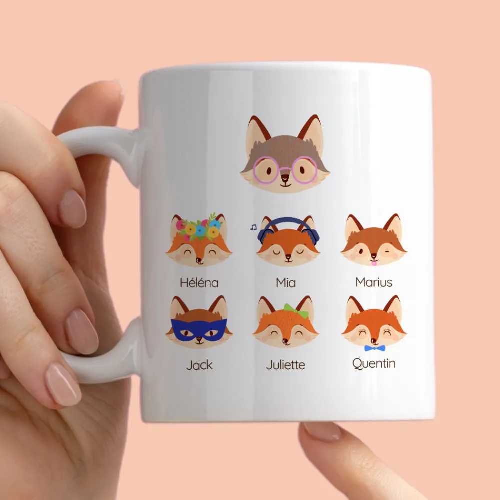 Chaque petit renard est personnalisable : choisissez celui qui représente le mieux chacun de ses petits-enfants, espiègle ou doux rêveur, et ajoutez leurs prénoms pour un souvenir unique.