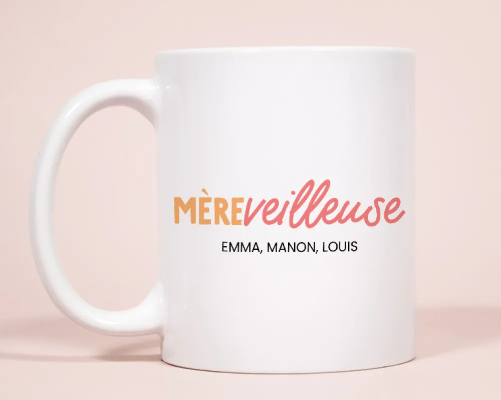 Offrez ce cadeau maman qui lui rappellera chaque jour à quel point elle est Mère-veilleuse. Commandez dès maintenant cette tasse personnalisable pour maman et laissez-la savourer chaque gorgée de son breuvage préféré avec une pensée toute particulière pour vous.