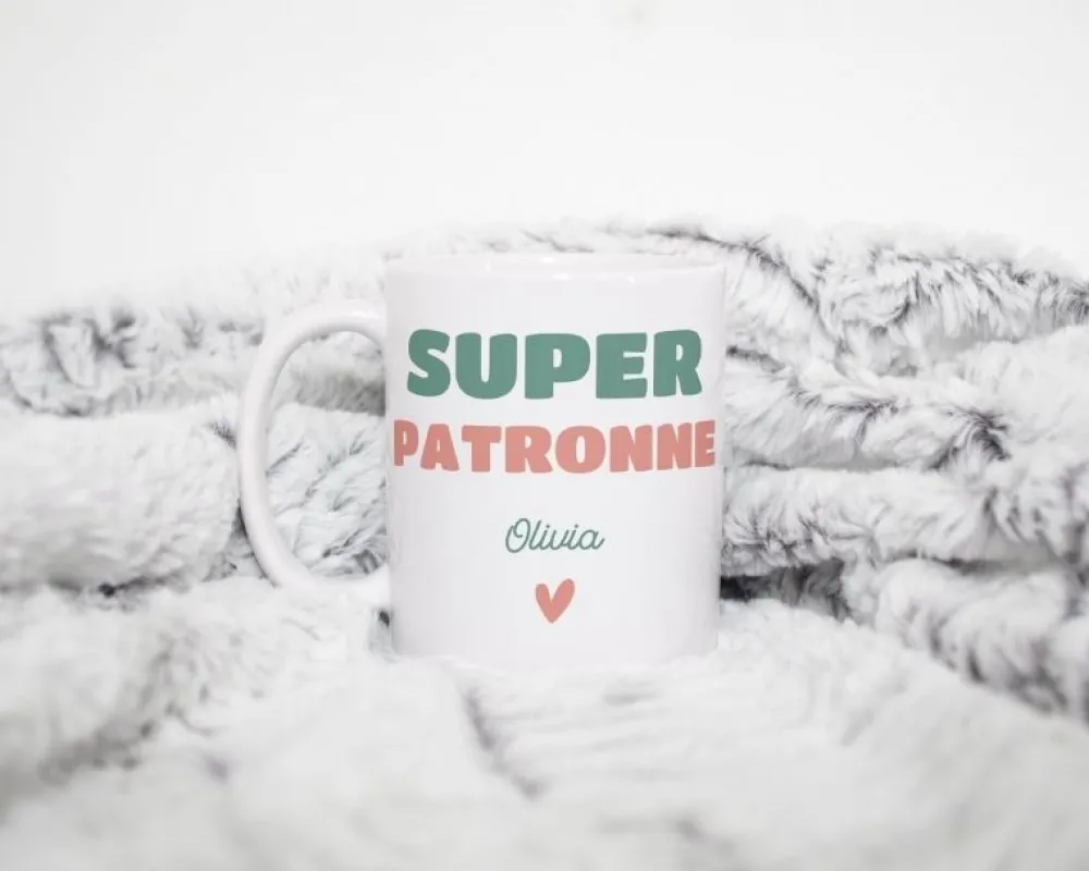 Le mug est personnalisé avec la mention « Super Patronne » et il est possible de le personnaliser avec un court message ou un prénom de votre choix. Notre atelier à Laval en France utilise des technologies de pointe pour personnaliser chaque mug individuellement. Le processus de personnalisation garantit que chaque mug est unique et qu’il reflète le message que vous souhaitez transmettre.