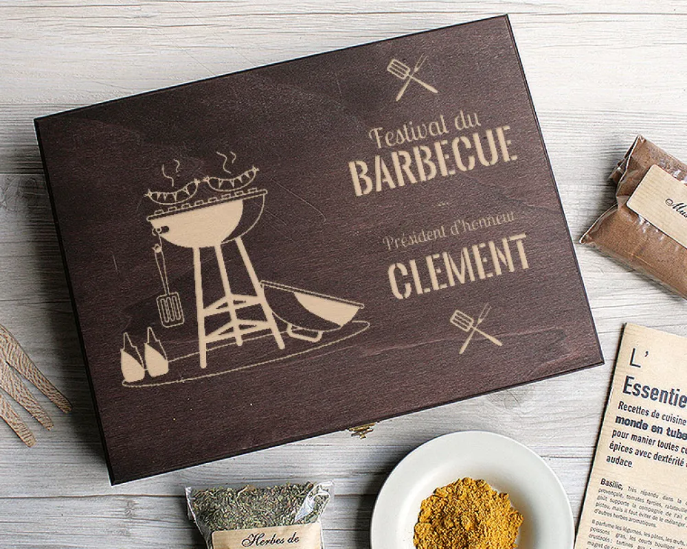 Petit coffret d’épices gravé Festival du barbecue – 9 épices du monde|Cadeaux.com Outlet