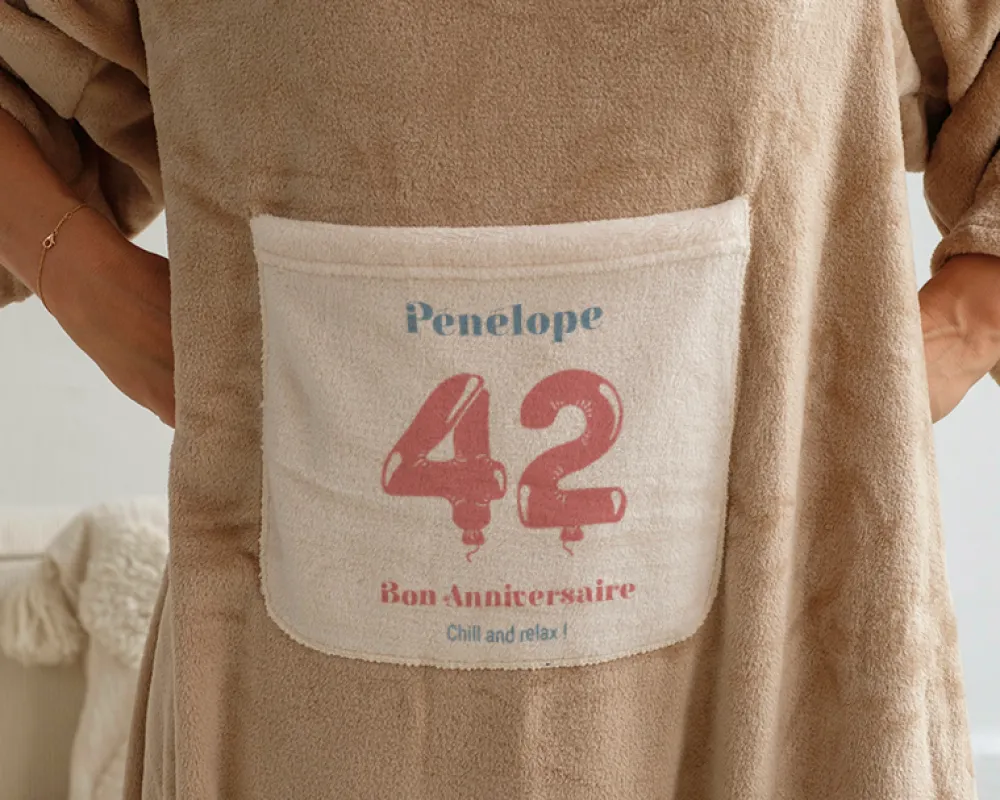 Quel bonheur de se glisser dans sa couverture à manches après une dure journée… surtout quand celle-ci est un formidable cadeau d’anniversaire ! Personnalisez-la du prénom et de l’âge de l’heureuse élue pour un cadeau plein de surprise.