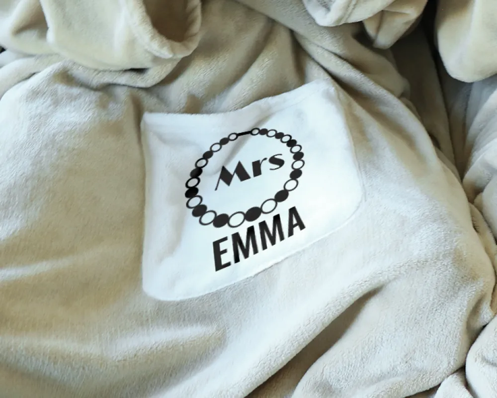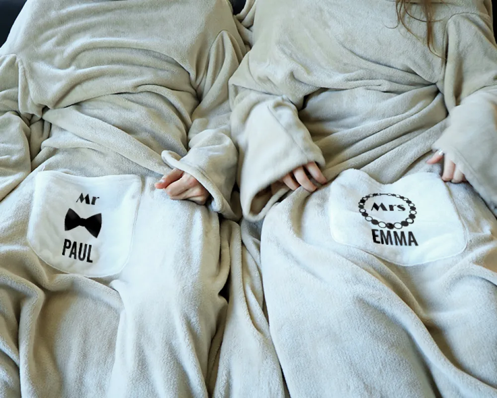 Notre Couverture à manches personnalisée pour couple « Mr. and Mrs. » en détail