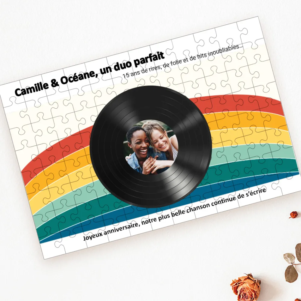 Un moment de détente et de nostalgie avec ce puzzle personnalisé au design inspiré des vinyles rétro. Une manière originale et ludique de revivre des souvenirs précieux tout en s’amusant.