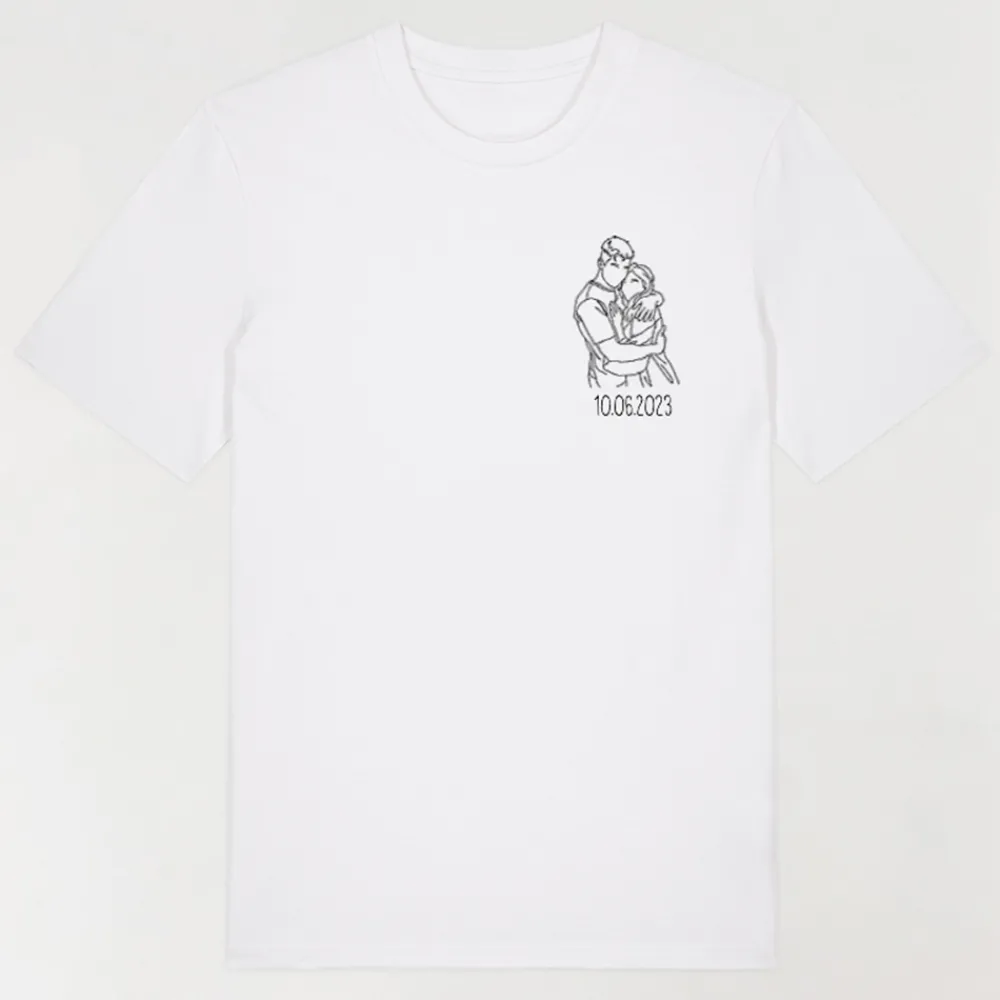 Il est désormais possible de faire broder la photo de votre choix sur un t-shirt ! Celle-ci sera redessinée avec soin par notre illustratrice avant d’être brodée. Le t-shirt personnalisé pour homme est un cadeau unique qui fera son effet à coup sûr ! Surprenez vos proches pour la Fête des Pères, la St Valentin ou pour un anniversaire.