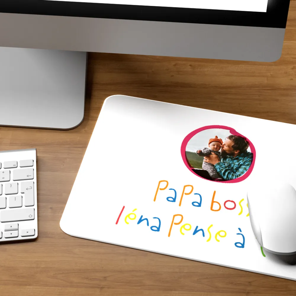 Il suffit parfois d’un petit détail sur un bureau pour illuminer toute une journée. Ce tapis de souris personnalisable en est la preuve : il mêle tendresse, créativité et utilité dans un format idéal pour les papas et mamans connectés.