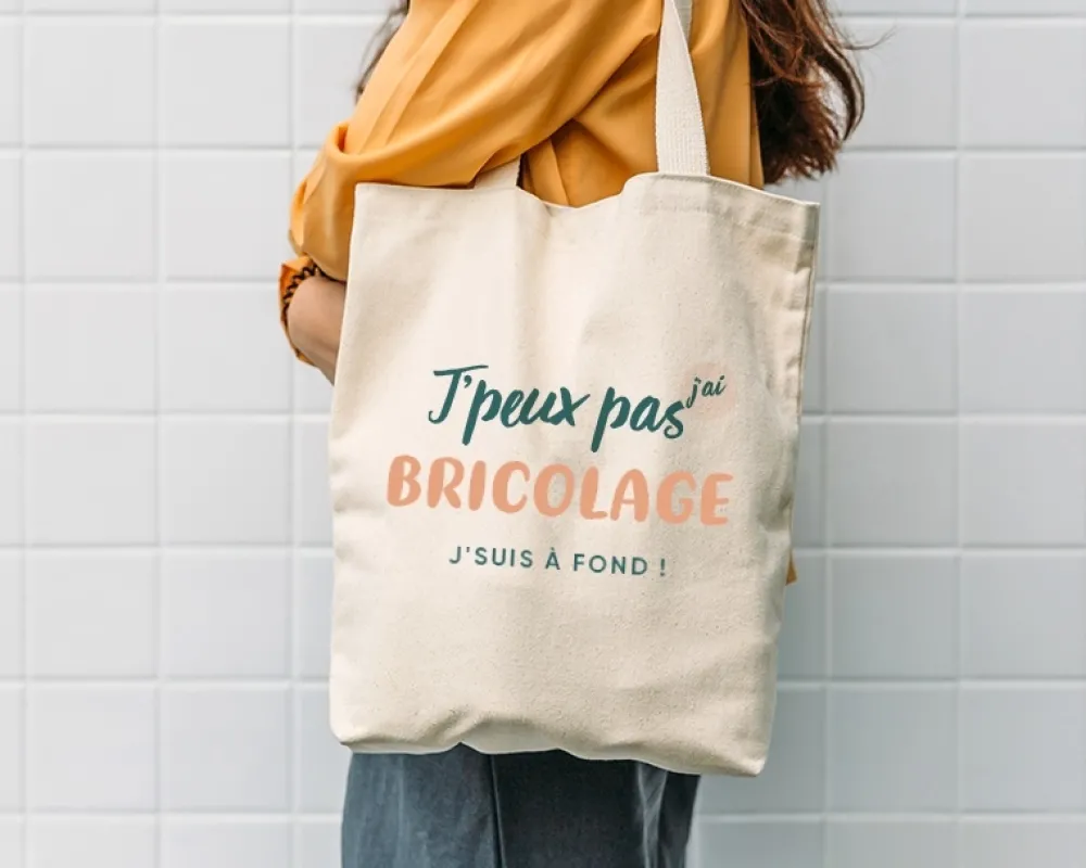 Vous cherchez un accessoire à la fois pratique et sarcastique pour afficher votre amour du bricolage ? Ne cherchez plus, le tote bag personnalisable avec le message « J’peux pas j’ai bricolage » est fait pour vous ! Ce sac en toile de coton recyclable sera parfait pour transporter vos outils et matériaux de construction tout en affichant votre humour pince-sans-rire.