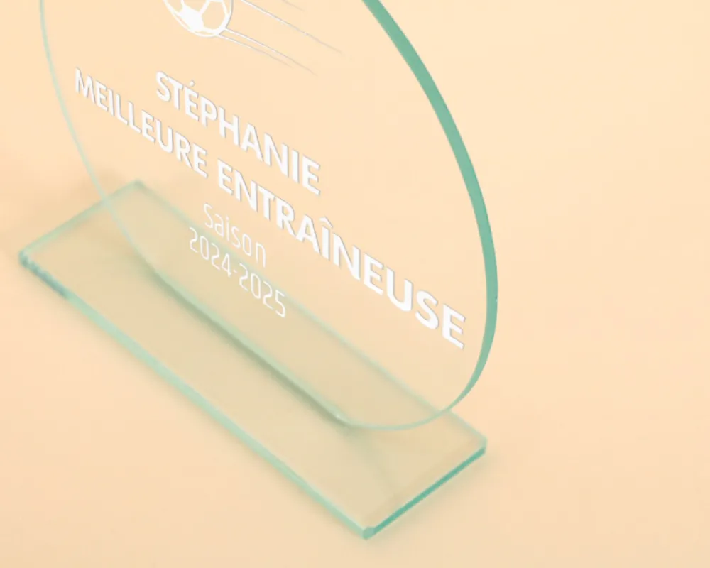 Que ce soit pour honorer le meilleur joueur de l’équipe, commémorer un titre remporté ou reconnaître le leadership exceptionnel de l’entraîneur, ce trophée en verre gravé offre une manière élégante et significative de célébrer les réalisations sur le terrain.