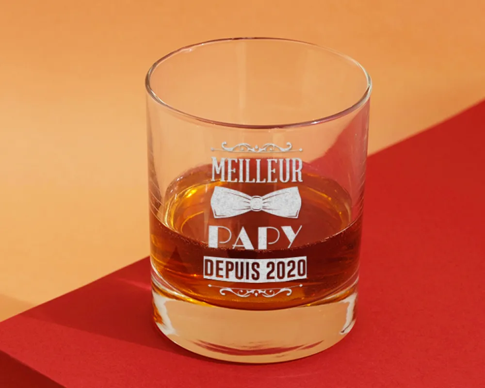 Votre pépé ou papi est un grand amateur de whisky ? Faites graver son prénom et son année de naissance et offrez-lui ce verre personnalisé. Un cadeau utile et plein d’amour pour le meilleur des grand-pères !