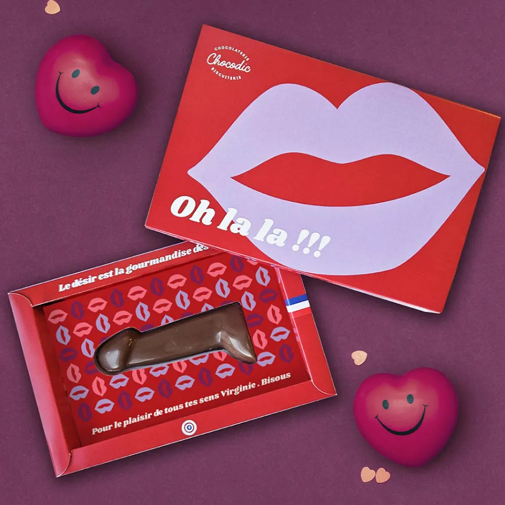 Surprenez vos proches ou pimentez vos moments à deux avec notre zizi en chocolat ! Original, ludique et irrésistiblement savoureux, ce chocolat coquin est l’équilibre parfait entre humour, sensualité et plaisir gourmand. Que ce soit pour une soirée romantique, pour la Saint-Valentin, une fête entre amis ou un événement spécial, ce cadeau humoristique et décalé est présenté dans un coffret raffiné que vous pouvez personnaliser avec un message unique.